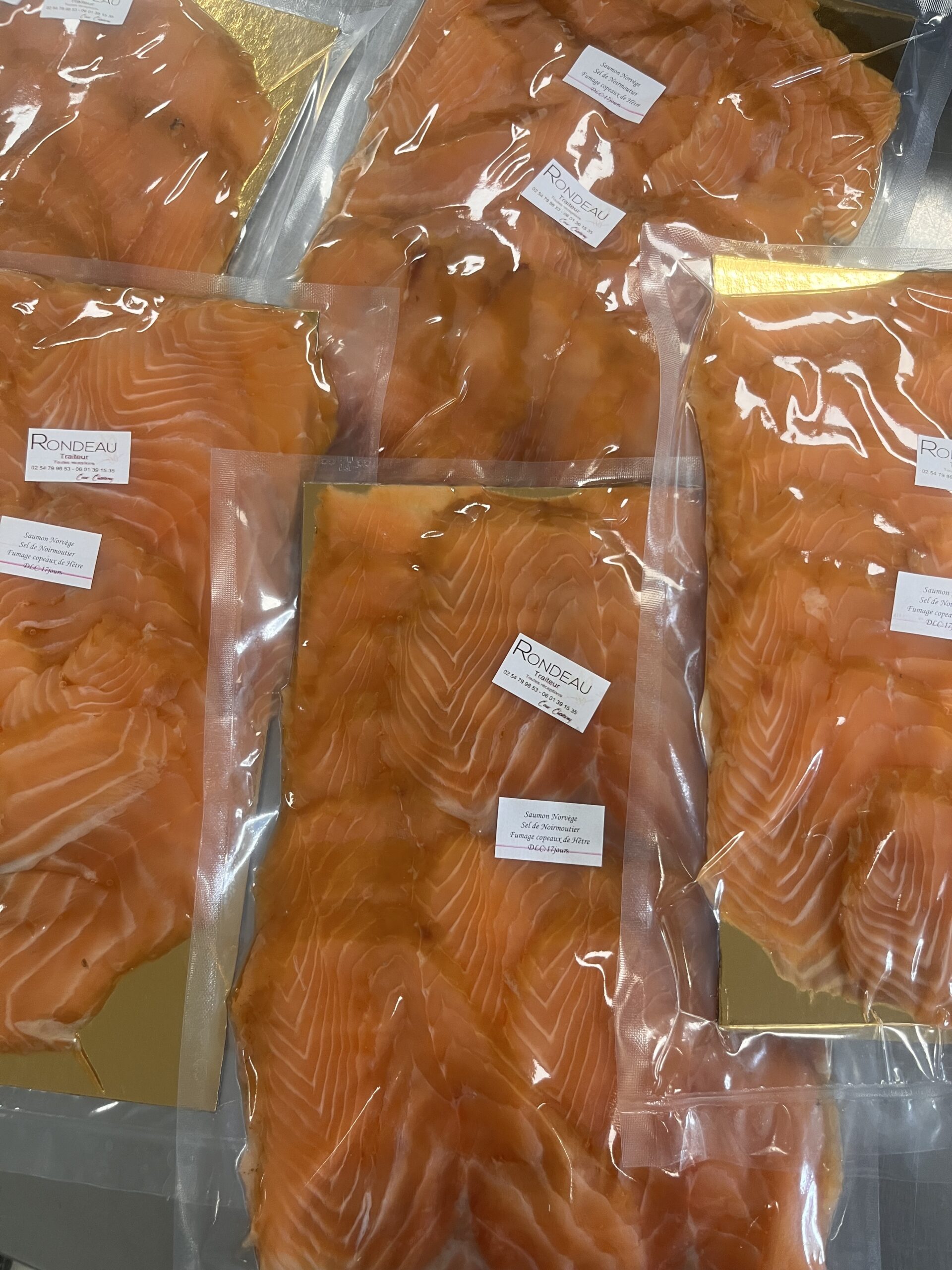 Notre incontournable Saumon Fumé en paquet sous vide conservation jusqu’à 3 semaines au réfrigérateur.